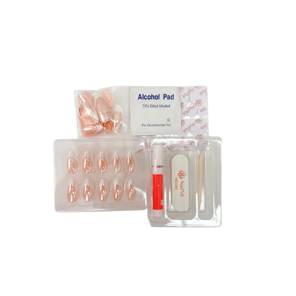 • Complete prep kit — nail file, alcohol prep pad, wooden cuticle pusher, nail glue, and gel nail stickers for non-damaging wear