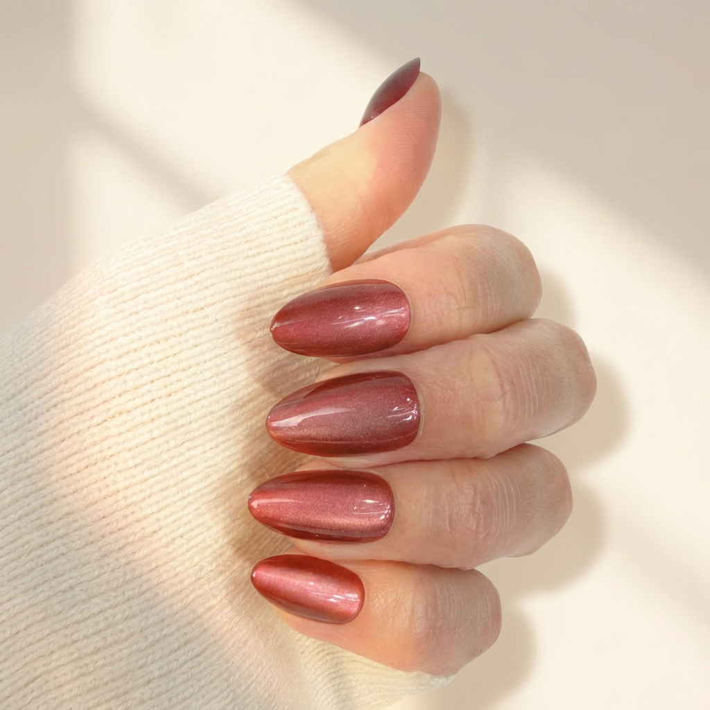 Bold, sultry, and endlessly captivating, Crimson Aura brings depth and movement to a rich wine-red base with shimmer that catches light like liquid silk.
