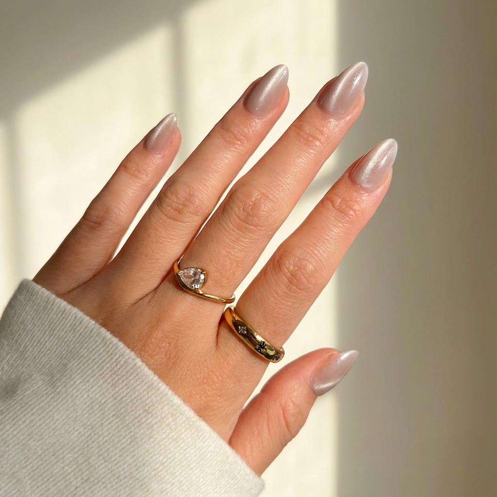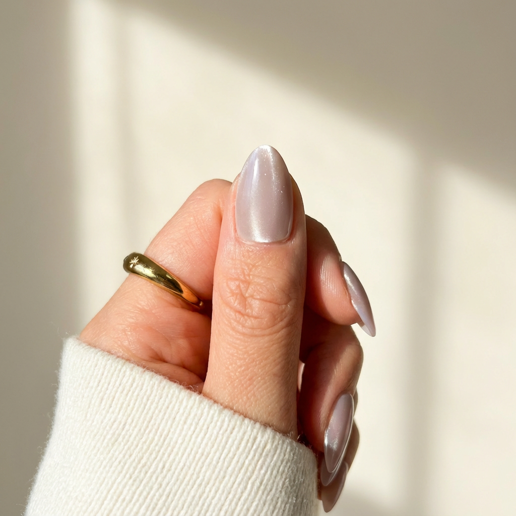 Delicate yet distinctive, Lavender Veil blends whispery lilac tones with a pearlescent cat-eye sheen that shifts subtly under the light.