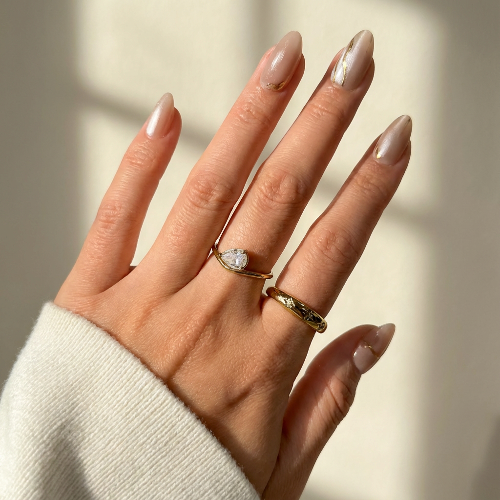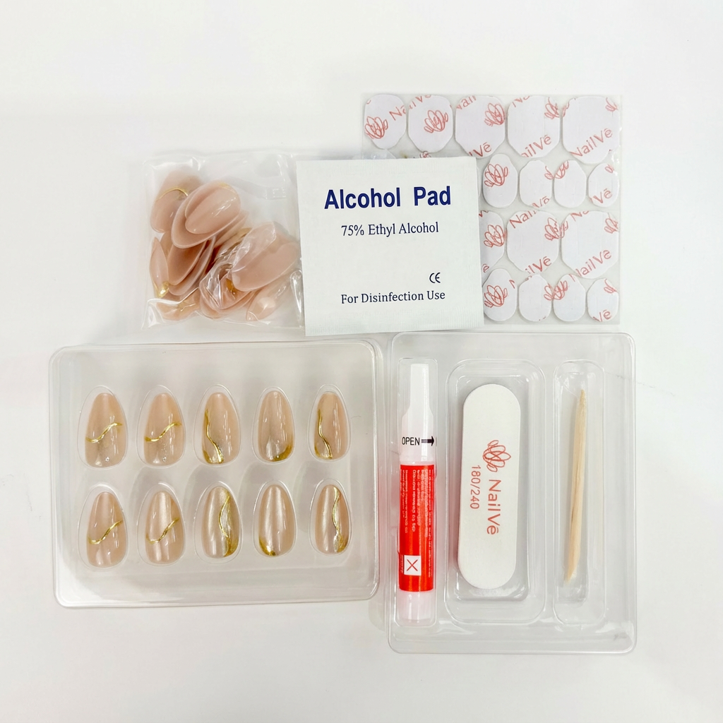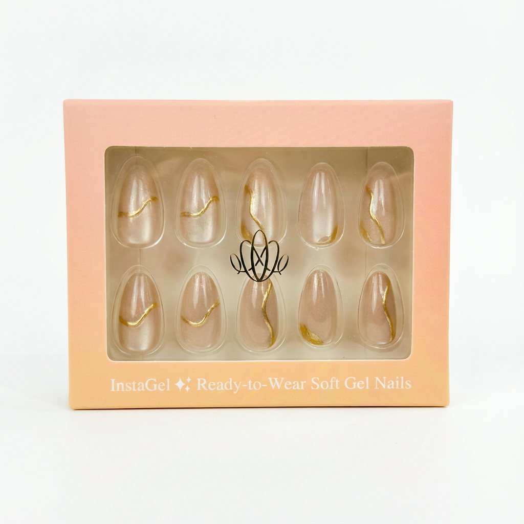 Timeless — Nude Purple Cat-Eye Gold Swirl InstaGel™ Softly radiant with a touch of artistry, Timeless pairs a pearlescent nude base with delicate gold chrome swirls. A graceful fusion of minimalism and modern glamour — for those who adore subtle detail and quiet luxury that speaks volumes without saying a word. What’s inside: 32 nails in 16 sizes — designed for a custom fit every time Complete prep kit — nail file, alcohol prep pad, wooden cuticle pusher, nail glue, gel nail stickers (for non-damaging wear) Style vibe: 🤍 Sophisticated | 💫 Polished | ✨ Effortless modern