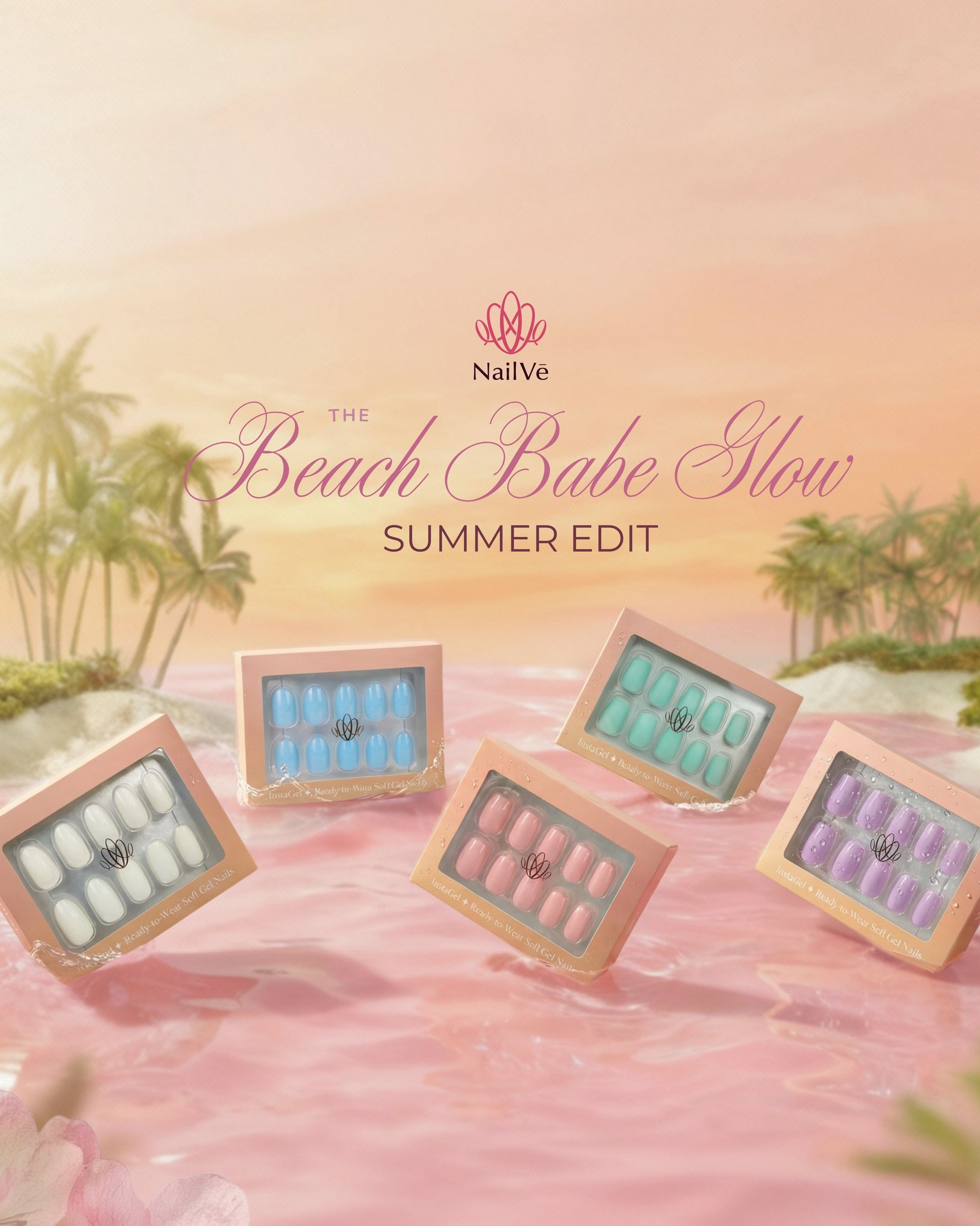 The Beach Babe Glow Summer Edit is all about colour, confidence, and glow. Featuring fresh blues, soft florals, and playful brights, this set is made for beach days, holidays, and statement summer nails that pop beautifully in the sun.