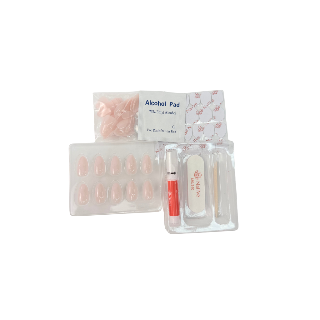 • Complete prep kit — nail file, alcohol prep pad, wooden cuticle pusher, nail glue, and gel nail stickers for non-damaging wear