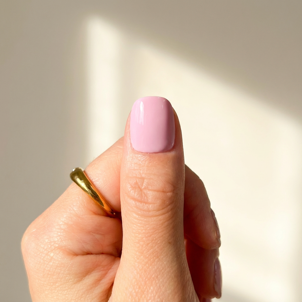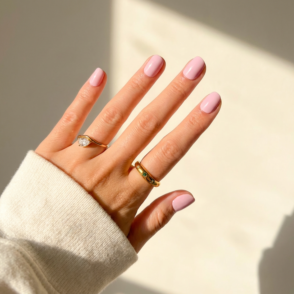 This creamy pastel pink gives a polished pop without being loud, like a glossy blush that makes your hands look instantly fresh — the color that says, “I’m in my soft-girl era,” yet still knows how to handle business.